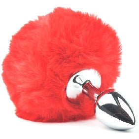 Small Size Metallic Anal Plug with Short Red Color Tail